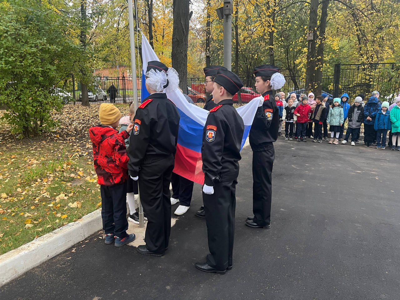 А так у нас проходит церемония поднятия флага, с которой начинается наша учебная неделя